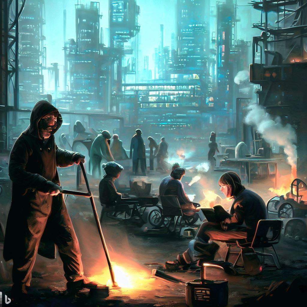 This brief experiment has made me curious about researching descriptions of modern working-class life and putting them through AI art generators to see what they come up with. It would be even better to see if others think they are reflective of modern times.